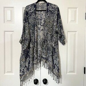 Soft Surroundings Emory Cardi Sequin Fringe Topper Jacket Cardigan L/XL Blue