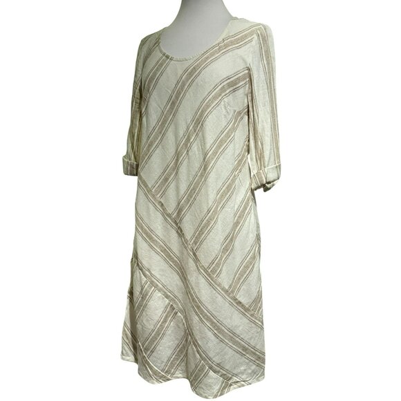 Soft Surroundings Equinox Stripe Linen Blend Shift Dress Boho Beachy Lined Sz M