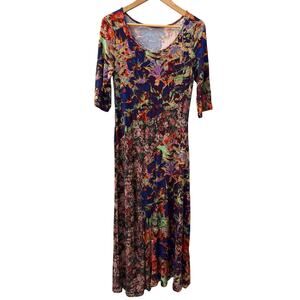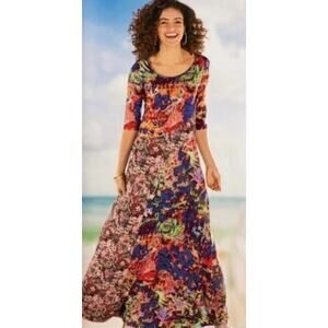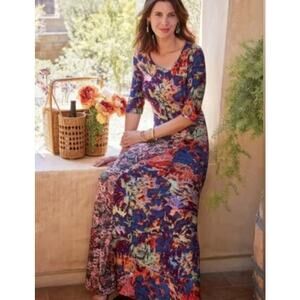 Soft Surroundings Estelle Floral 3/4 Sleeve Maxi Dress Multicolor Size Small