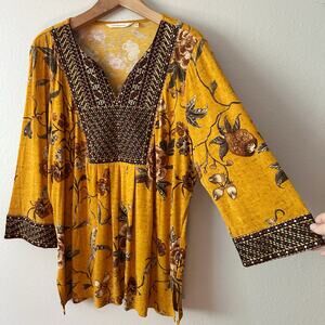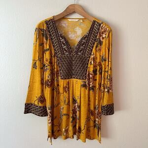 Soft Surroundings Etana Floral Embroidery Antique Gold Tunic women's size 2X