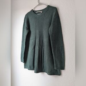 Soft Surroundings Evergreen Cable Knit Wool Blend Crewneck Sweater.