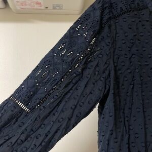 Soft Surroundings Eyelet V-Neck Button Long Sleeve Blouse Size Small