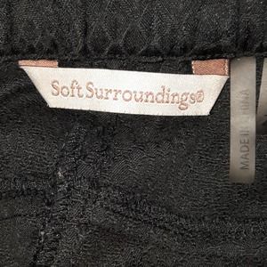 Soft Surroundings Faux Snakeskin Pattern Trousers. Style 58519. Zip side and button closure with Elastic back waist. 2 back pockets. Black Snakeskin, Black Python Jacquard. Preowned Great Condition.