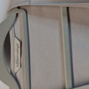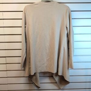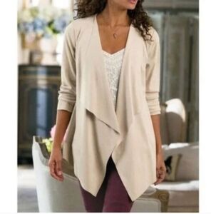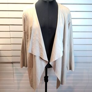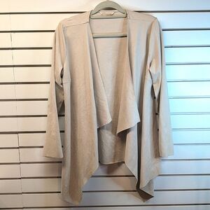 Soft Surroundings Shape Drape Open Front Faux Micro Suede Cardigan Jacket, Size Large, Light Tan Oyster Color, Waterfall Front, EUC