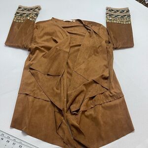 Soft Surroundings Faux Suede Embroidered Cuff Open Draped Cardigan Jacket Sz L