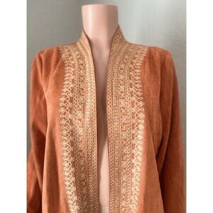 Soft Surroundings Faux Suede Orange Duster Coat Jacket Cardigan Embroidered Sz L