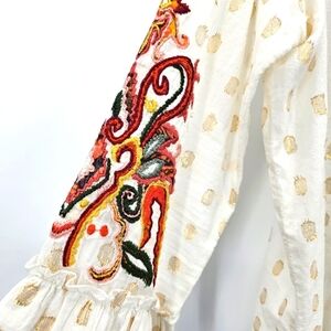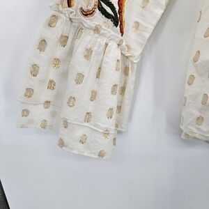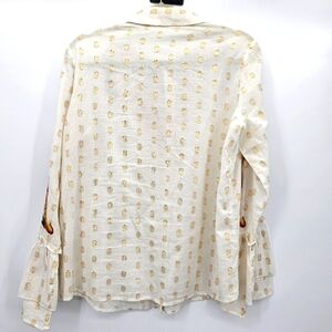 Soft Surroundings Flamenco Embroidered metallic gold Button Down Top Womens Size Medium