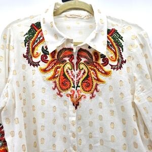 Soft Surroundings Flamenco Embroidered Button Down Top Womens Size Medium