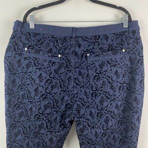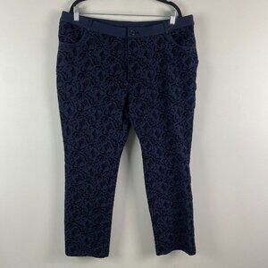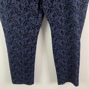 Soft Surroundings Flocked Baroque Stretch Ponte Navy Blue Pants Size 1X Ankle