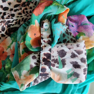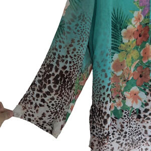 Soft Surroundings Floral Animal Print Popover Long Sleeve Sheer Blouse Sz L