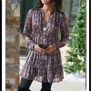 Soft Surroundings Floral Castile Tunic Dress Women's Long Sleeve Size Medium