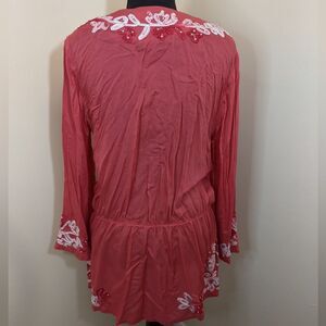 Soft Surroundings Floral Crush Coral Tunic Embroidered Beaded Blouse Small