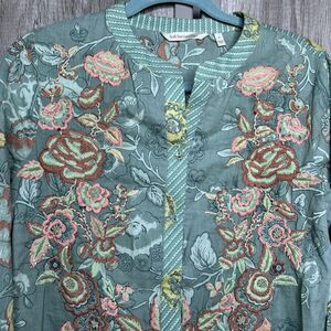 Soft Surroundings Floral Embroidered Boho Beaded Tunic Top Size S