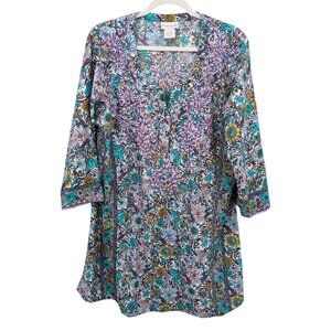 Soft Surroundings Floral Embroidered Tunic Top L Boho Festival Cottagecore