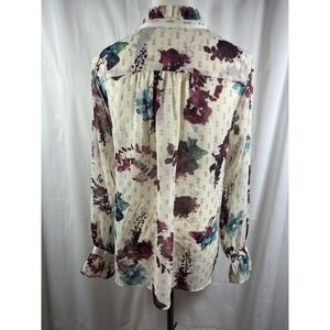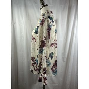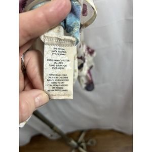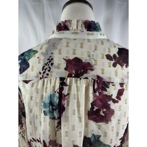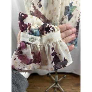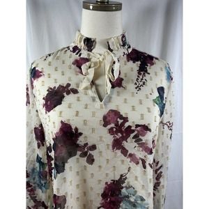 Soft Surroundings Floral Metallic Blouse Tie Neck Bell Sleeve Size S Multicolor