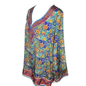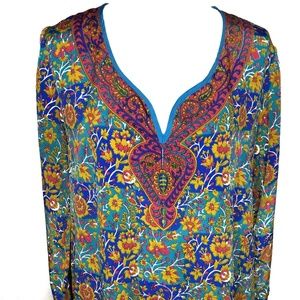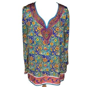 Soft Surroundings Floral Split Neck Tunic Top Size Medium Multi Color