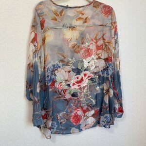 Soft Surroundings Floral Tunic Top with Embroidered Back Large