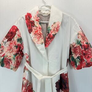 Soft Surroundings Floral White Jacket Coat Shawl Collar Med
