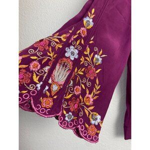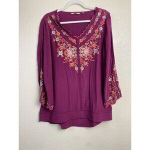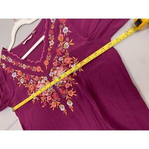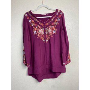 Soft Surroundings Floral embroidered Top Womens size Medium Magenta Purple Boho Vacation