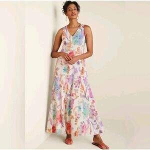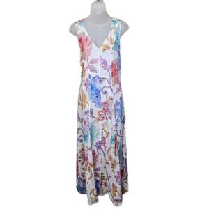 Soft Surroundings Flourish Dress Floral Maxi Watercolor Resort Vacation V-Neck M