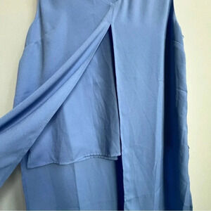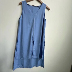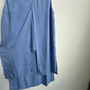 Soft Surroundings Blue V Neck Shell Overlap Hi Lo Longer Panel Layer Tunic Top
