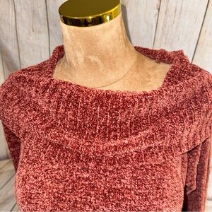Soft Surroundings Fold over Sweater, chenille, tunic, rust color, women’s sz L