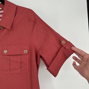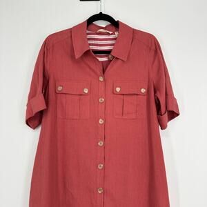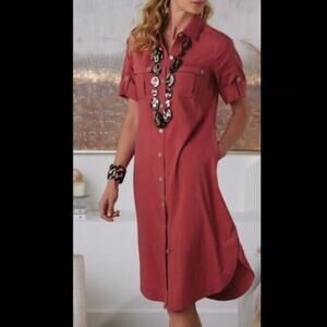 Soft Surroundings Fontana Linen Blend Button Up Midi Dress Preppy Womens PM