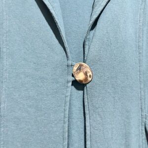 Soft Surroundings Fringed Jacket Small Teal Blue Mid Length Cotton Button Front