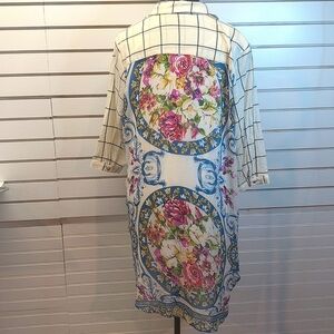 Soft Surroundings Gardenside Windowpane Cream Floral Tunic Shirt Dress w/ Cami