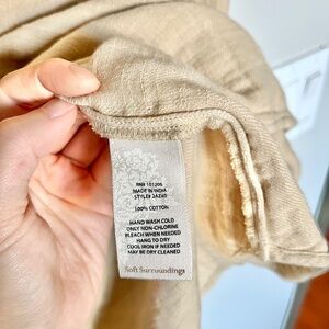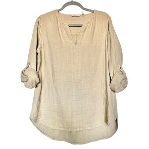 Soft Surroundings Gauze Cotton Vneck Tunic Top Roll-tab Sleeves Beige Tan Size M