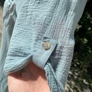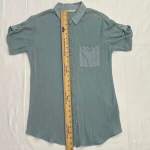 Soft Surroundings Gauzy Textured Cotton Light Blue Top XS Short Sleeve Tunic