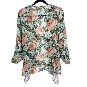 Soft Surroundings Georgette Blouse Open Front Womens Sz S Floral Semi Sheer