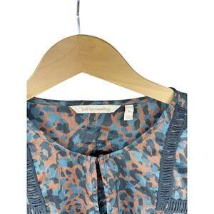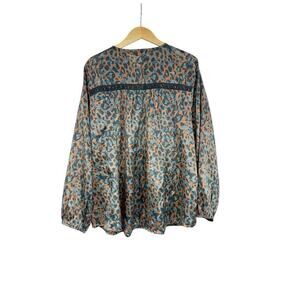 Soft Surroundings Gianna Copper Teal Animal Print Top Long Sleeve Size XL Silky