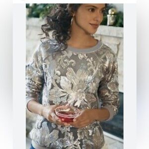Soft Surroundings Glistening Sequin & Velour Jersey Knit Lined Sweatshirt Sz XL