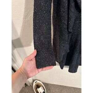 Black long sleeved ruffle long duster cardigan with glitter flecks and a feminine vibe. 1st pic is a black one mine is more of a dark grey. See pics for more details.