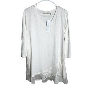 Soft Surroundings Grace Tunic Top Ivory Pearl Medium NWT Asymmetric Ruffle Hem