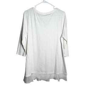 Elevate your everyday wardrobe with the Soft Surroundings Grace Top in "Ivory Pearl." This lightweight, draped tunic features a flattering V-neckline, 3/4 sleeves, and an asymmetrical chiffon-layered hem that adds movement and elegance. Crafted from a soft cotton-modal blend for breathable comfort and effortless style.
