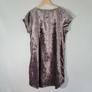 Soft Surroundings Gray Crushed Velvet Floral Embroidered Boho Dress Sz Large, V-neck, Short Sleeve, Mini Length