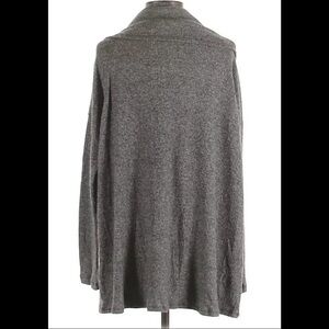 Soft Surroundings "Easy Everyday Tunic" woman's gray long sleeve funnel neck tunic. Tunic has a drawstring neck and kangaroo front pocket. It's made of a very soft viscose, nylon and spandex. Sweater is a woman's size petite large.