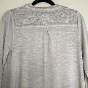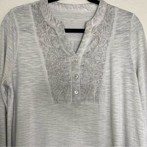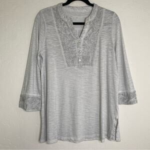 Soft Surroundings Gray Embroidered Cotton Blend 3/4 Sleeve Tunic Top Small