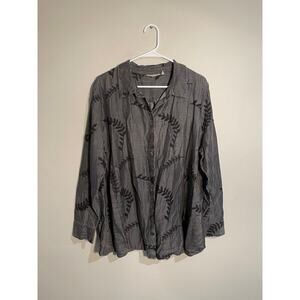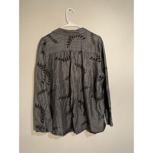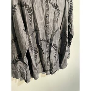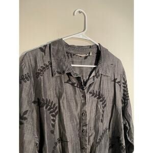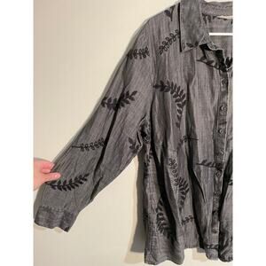 Soft Surroundings Gray Floral Embroidered Chambray Button Front Plus Size 1X Top