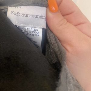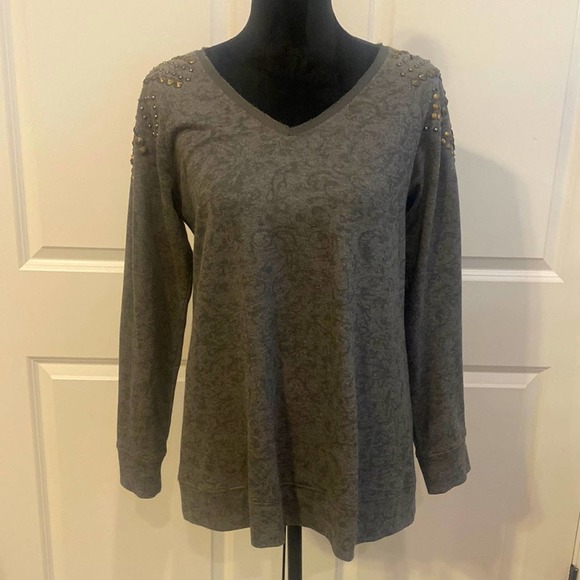 Soft Surroundings Gray Floral, Paisley design long sleeve with Studded details