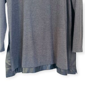 Soft Surroundings Gray Long Sleeve Faux Leather Trim Tunic Top Size Large