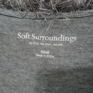 Soft Surroundings Gray Long sleeve Shark bite Tunic blouse w Faux feather trim S