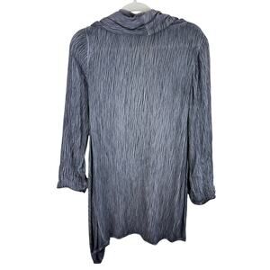 Excellent preowned condition. Gray long roll tab sleeve cowl neck crinkly fabric lightweight pullover asymmetrical hem tunic blouse. 100% viscose material. Approx. measurements: Shoulder to hem 34", pit to pit 20", sleeve from neck to sleeve hem 27". No Size Tag (estimate size Medium based on measurements, please refer to).