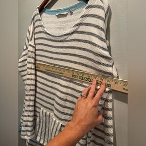 Embrace timeless style with this Soft Surroundings sweater, featuring a classic crew neck and a chic gray and white striped pattern. Its relaxed fit and medium-weight knit make it perfect for casual wear, while the side slits add a touch of modern comfort.