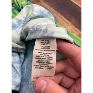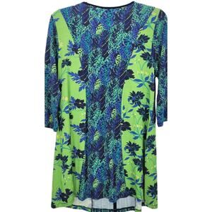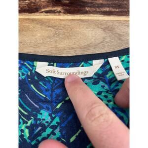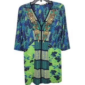 Soft Surroundings Green Blue Floral Sequin Beaded Embroidered Tunic Top Size XS