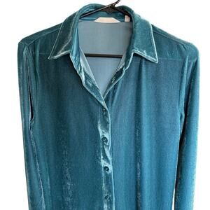 Soft Surroundings Green Blue Teal Velvet Button Up Tunic Top Long Sleeve XS