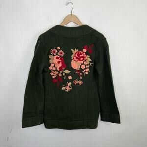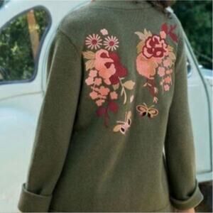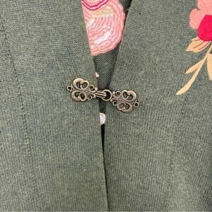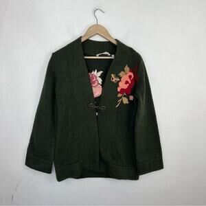 Soft Surroundings Green Embroidered Floral Okata Sweater Cardigan
