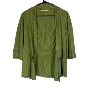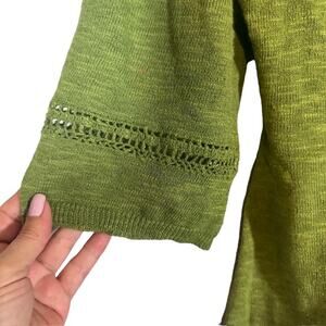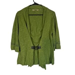 Soft Surroundings Green Long Sleeve Linen Blend Belted Knit Cardigan Women Sz M